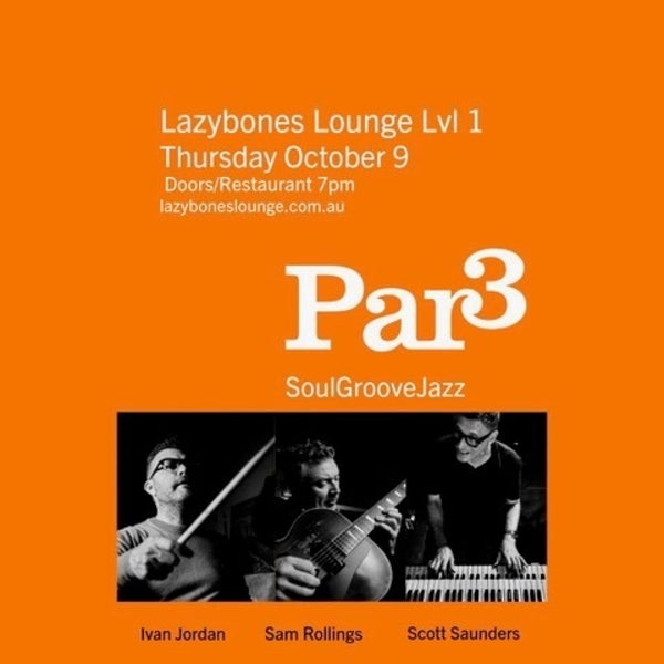 - Join for PAR3’s Album Launch !! PAR3 is a soul jazz organ trio that takes stylistic cues from artists of the 60s/70s like Jimmy Smith, Jimmy McGriff and Grant Green but with a contemporary twist using updated grooves and original tunes. This project is the creation of Scott Saunders of dig (directions in groove) on organ, with the scintillating beats of Ivan Jordan on drums, and the ultra-tasteful stylings of Sam Rollings on guitar. The repertoire comprises originals, mixed with vintage funky organ Jams, and reinvented versions of classic pop songs.