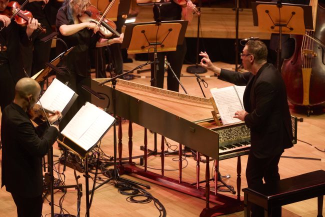 Without pause, that segued into several movement from Handel’s 1st Suite. The Water Music Suites would be standard fare for the Brandenburgs, and concertmaster Ray Chen kept the expanded string sections in line. I’ve always thought one of the riskiest instruments to play live is the Baroque horn, being the most likely to break when pitching up to the next harmonic, but tonight’s hornists coped admirably.