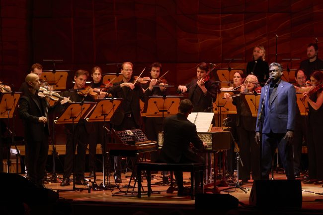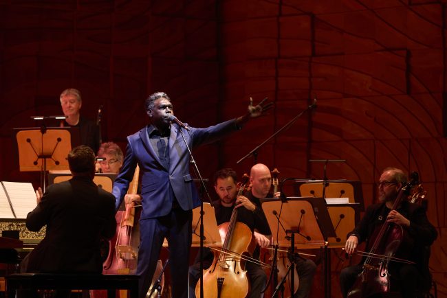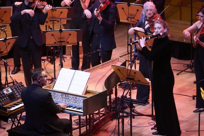I am always delighted when at the end of a fantastically curated classical concert, the final work takes you to a whole other level. This came in the form of the significantly larger portion of Wales/Maymuru’s composition, Nguy Gapu. The opening bars gave us a sound that thrilled me with delight, simple but effective. That was the harpsichord being used as a textural wash of rapid arpeggios, a wondrous contrast to the utilitarian basso continuo that typifies Baroque music harpsichord scores. Rrawun reached a new level in his vocals, building incrementally to a shining high note that held us captive while the strings whirled around him. He also included some elements of traditional dance (if somewhat limited by the available space on a stage crowded as it was with talented musicians). And Dyer’s judicious use of some low booming bass notes on a synthesiser created a cinematic effect, enhancing the illusion of eastern Arnhem Land – simply astonishing!