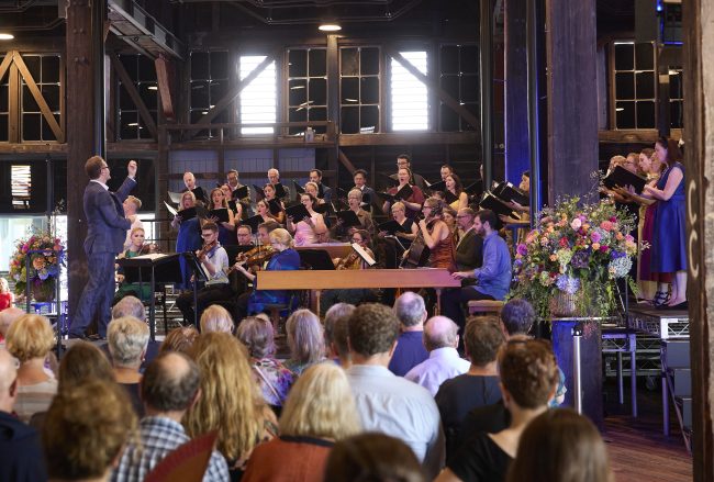 Brett Wheymark, Artistic Director of the Sydney Philharmonia Choirs, not only prepares his choristers to perfect readiness, he also analyses each hall in which the choir performs to achieve an innovative visual and a glorious acoustic experience for his loyal, dedicated fans. And for the season opener, Gloria: Vivaldi; Bach and Handel, the venue couldn’t have been a better option. On a balmy Saturday afternoon, the large wooden side doors at Pier 2/3 Walsh Bay were flung open to allow a soft breeze and sparkling harbour glimpses. A perfect Sydney afternoon!
